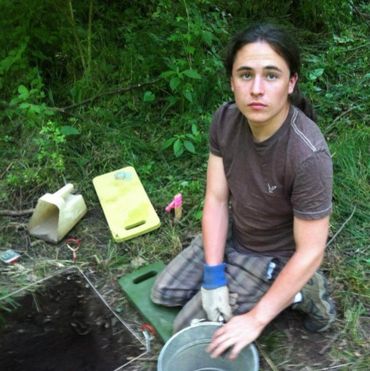 Layla is an 8 year old pitbull I adopted from the Humane Society. She was found abused and abandoned, but after a lot of care and training, she has been completely rehabilitated. She occasionally assists with field work by carrying extra gear in her pack along with her own water and lunch. Layla has consistently been an invaluable companion and she loves exploring new places and making new friends. She has not (yet) been trained to detect burials.